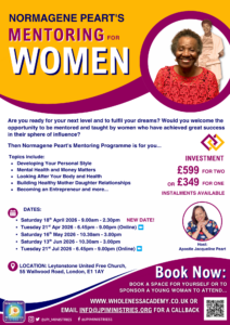 Apostle Jacqueline Peart is an ordained minister and serves on a number of leadership and oversight boards. She is an Ambassador for Compassion UK children’s charity and was recognised as one of the UK’s leading women preachers by Keep the Faith Magazine in 2009; and one of the UK’s black women of influence in 2017. Her ministry work extends across a number of initiatives that have included partnerships with other organisations, such as Women Inspiring Women (WIW) and Men Inspiring Men (MIM).